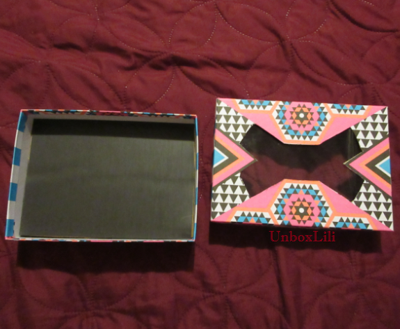 Cut the sheet of plastic to fit on the underside of the Birchbox lid. It should be large enough to cover the hole with a little extra room. When you tape or glue the edges of the plastic to the box, you don’t want tape lines to be visible once the lid is flipped over.