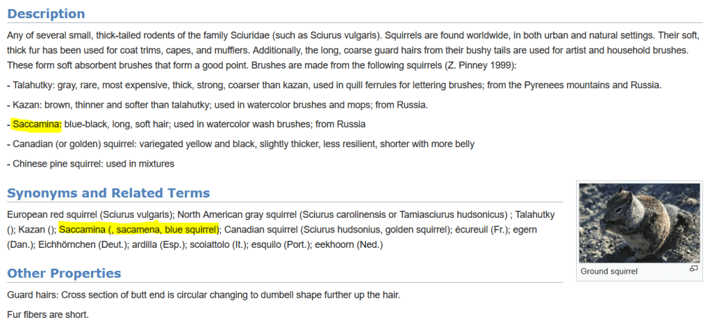Before we get into the review, I’d like to address the discrepancies that are sure to come up, such as some brushes being listed as Blue Squirrel on one website and then Grey squirrel for the same brush on another site. Red squirrels and Grey squirrels are confirmed to be different, but I’ve seen conflicting information as to whether blue and grey are the same.* It ultimately is up to the manufacturer to decide what it is and how it should be listed. I thought perhaps it came down to the location the hair came from, the color of the bristle, or the quality of the hair. The ones listed as blue that I have seen tend to be darker, almost black. Whereas those listed as grey when I bought them look dark brown. However, the tail colors of actual grey squirrels fluctuate seasonally between brown, black, and silvery gray, so I realized that couldn’t be the right answer.
