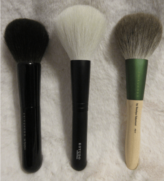 Kumano is called the world’s brush making capital and it is where all the brushes I’ll be talking about today were created. Chikuhodo has a detailed explanation of the process that artisans go through to handmake these brushes. For generations, the brush makers in Kumano have been honing their craft, making world-renown calligraphy brushes, paintbrushes, and then segued into makeup brushes. The finest hairs are chosen, and nothing is machine cut. The tips are left on, which adds to the silky-soft feel. These brushes are never scratchy! Although most of these companies use natural hair, especially for their elite lines, there are some brands like Hakuhodo, Chikuhodo, and Wayne Goss who have some synthetic brushes in their lineup.