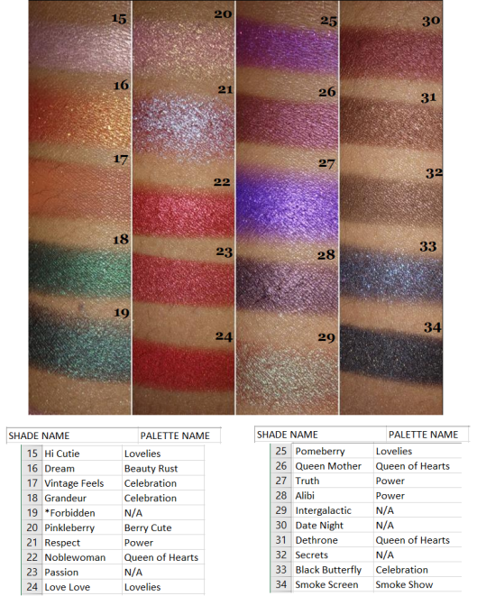 I have enough dark greens, so I removed Grandeur from my collection. Noblewoman won over Passion. And even though Smoke Screen was the only black shade with gold shimmer in my collection, I rarely use any form of black other than matte, so I took that out as well. I would like to reiterate that this had nothing to do with an issue of the formula. I was so tempted to keep them all, but I needed room to add Safari Raine and the upcoming Juicy Boost collection. I could have used another empty magnetic palette (I have so many) but I don’t think I need over 100 eyeshadows from any single brand.