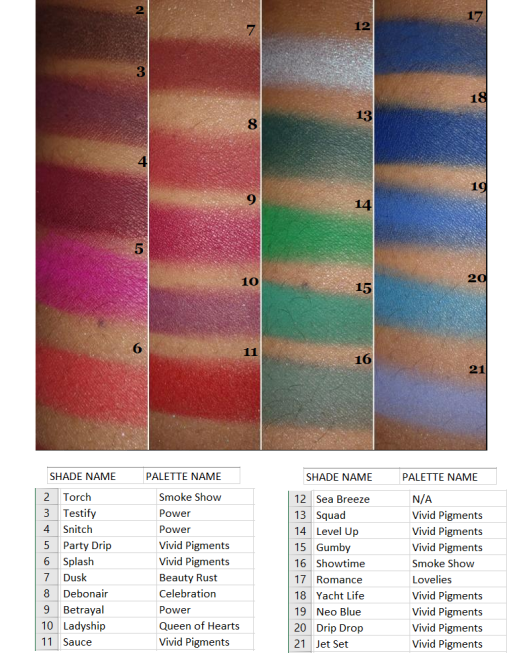 I got rid of Snitch and Torch for the same reason as Chocolate in the previous round of swatches. I noticed that the palette with the most shades I decided not to keep was from Smoke Show. Prior to getting the Safari Raine palette during the last restock, Smoke Show was the last palette I added to my collection as it had the least appealing color story for me. The shade I wanted most, Showtime, I didn’t keep either as it couldn’t compete with those stunning Vivid green pigments.