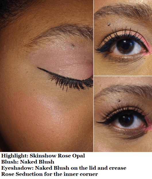 This palette somehow turned me into a pink eyeshadow lover! The shade Rose Seduction is considered safe in the EU, which is often ahead of the US in terms of cosmetic safety, but the FDA hasn’t updated their stance on eye-safe pigments, so this is an “artistry” palette rather than an “eyeshadow” palette. What sold me on trying this out is that Kinkysweat on Youtube suggested that Naked Blush and Rose Seduction could be used for blush, Skinshow Rose Opal as a highlighter, and Astral Pink Moon as a highlight topper. It turns out that both Rose Seduction and Naked Blush work as a blush for me since Naked Blush deepens up when applied to the skin. Rose Seduction also looks like it would be far too bright, but it’s subtle looking on my cheeks with my Chikuhodo blush brushes. I don’t like Astral Pink Moon on the cheeks because of how glittery it is, but Skinshow Rose Opal makes a fun pinkish gold highlight.