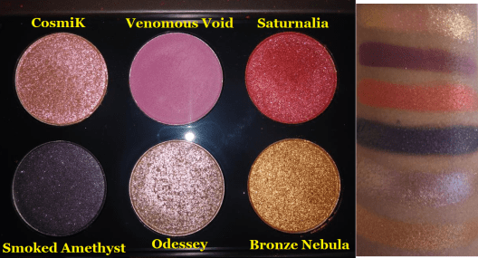 As for repeats, there is a shade called Corruption in the MTHRSHP Sublime Bronze Temptation palette and Smoked Amethyst in MTHERSHP Subversive Metalmorphosis palette that both appear in the Star Wars Dark Galaxy palette. The shades Bronze and Gold Standard from Subversive Metalmorphosis are in Star Wars Galactic Gold. Gold Standard is also in the Decadence Palette and Mini Eye Ecstasy.