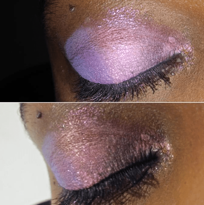 Shadows do crease on me, but if I use too much of the Nyx pencil on my eyes the creasing becomes deeper and more noticeable. Using too much also prevents it from drying down, but too little and the shadows won’t stick. A few hours after I did that eyeshadow look, which had a little too much of the Nyx pencil, I accidentally rubbed my eye and a thick patch of eyeshadow left a streak across my hand. I’ve had shadows come off a little but not to this degree. So, it’s important to find the right balance.