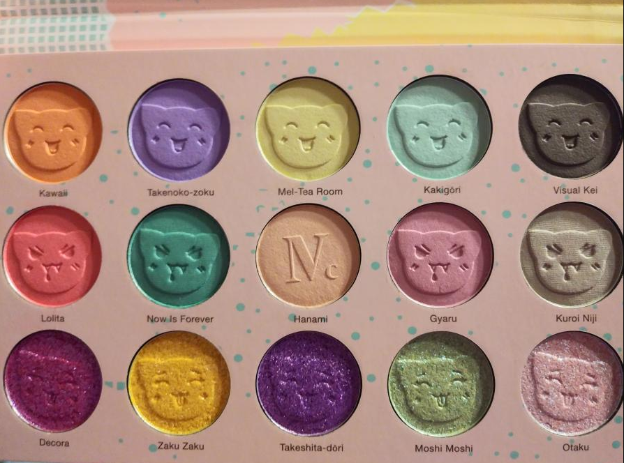 I’m starting this post with a description of the palette to set the tone of what I was expecting: “Nomad x Tokyo Harajuku Intense Eyeshadow Palette. This poppy pastel palette of fun combines 10 high-pigmented eyeshadows and 5 unique multi-chrome toppers for a sheer prismatic color effect. 15 kawaii shades inspired by the wild creativity of the trendy Tokyo youth. Infused with Camellia Japonica Oil to make skin soft and silky smooth. Cruelty-free & vegan.”