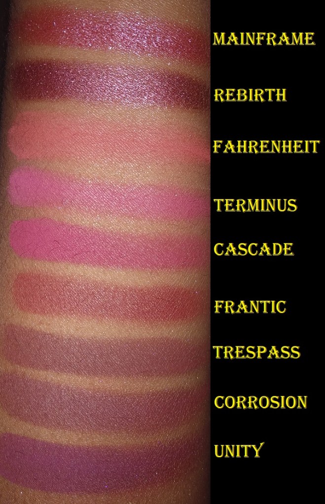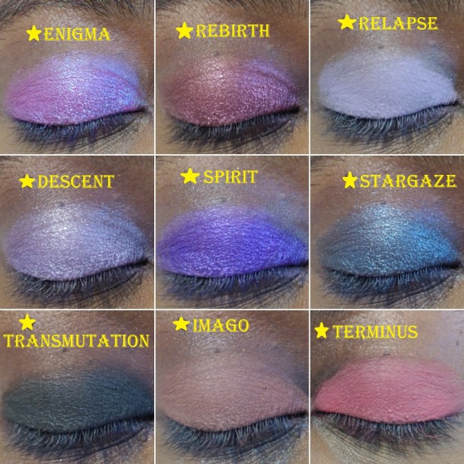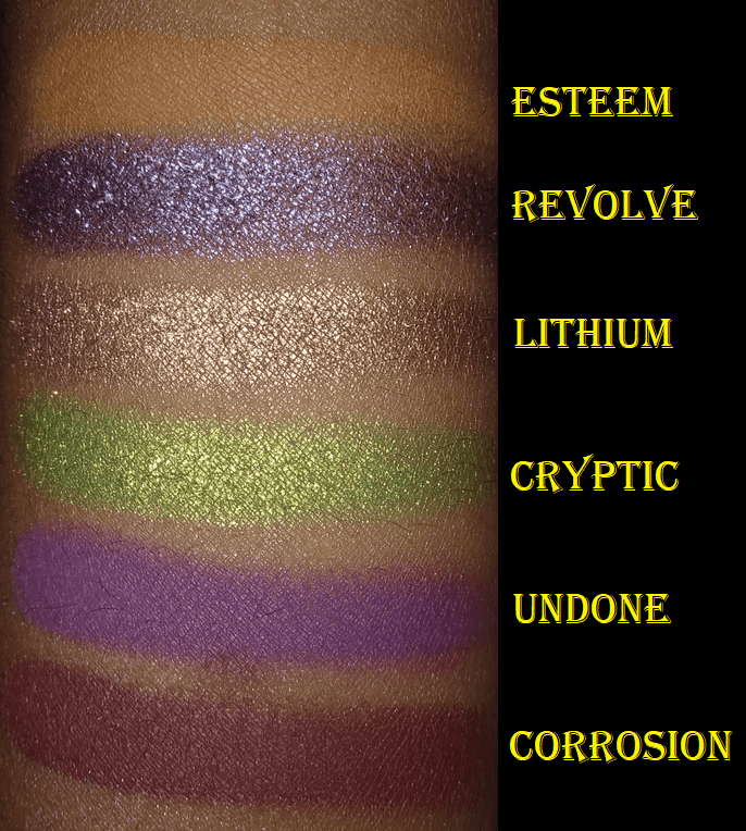 These pans are also available for purchase individually, which is why I counted them as part of Lethal’s 90 current shadows. What made the Velvet Dusk collection especially exciting is that for the first time, Lethal introduced two “triochrome” eyeshadows.