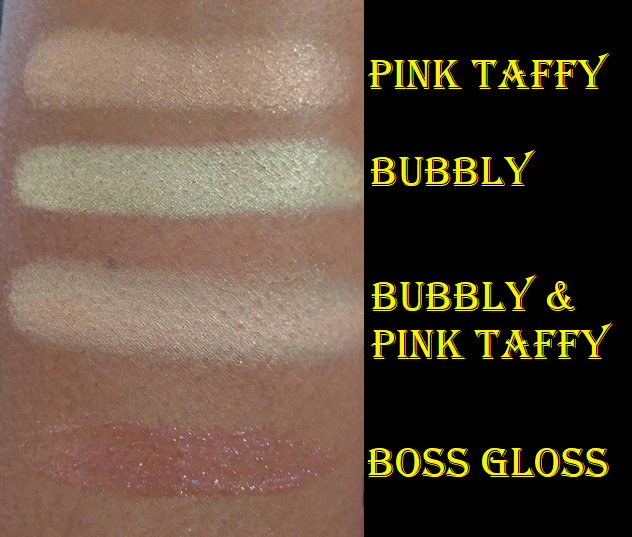 All the Barbie highlighter swatches are over Kiko Milano’s blush in Candy Cane and Make Up For Ever Velvet Matte Foundation in Macao.