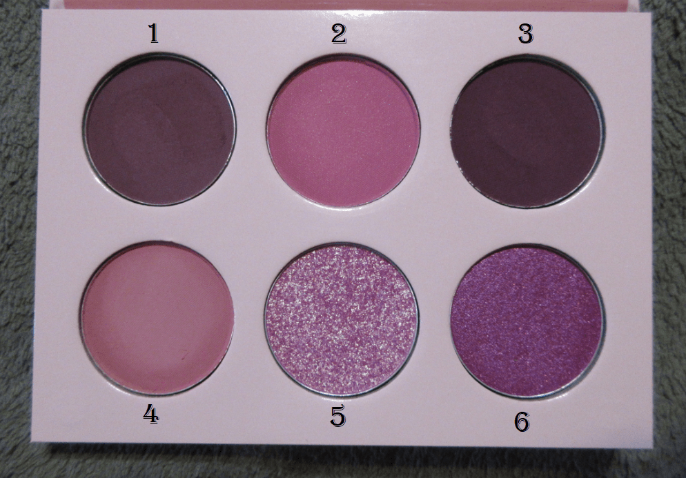 What I find most interesting about these shades is that the mattes have a corresponding shimmer that pairs very well together. Shades 3 and 4 match very well. 1 and 6 have similar pink-coral vibes. 2 and 5 are a bit more on the fuchsia pink-purple side. I haven’t seen matching pairings like these in the other palettes. While I still have the issue of these mattes not showing as well without a lighter base (as can be seen in the crease of the first look versus the second look in the photo below), it’s not as problematic compared to the difficulty level I had with the Nubian Glow or Mauves palettes. Also, while I am happy with the whole corresponding shadow idea, 3 and 5 look so similar on the eye, especially when next to each other in the top look on the lid below. When there are as few as 6 shades, I prefer to not have any duplicates. That being said, when I depot this, I’m planning to keep all 6 shadows.