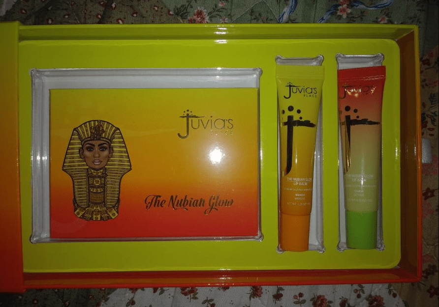 This collection consists of the Nubian Glow Palette, the Mango Lip Balm, and Guava Lip Balm. They were all packaged in their own boxes within this set.