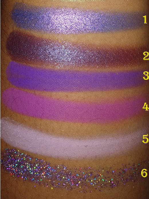 Considering how the Nubian Glow went for me, I am surprised to say I didn’t have as much trouble using this palette. It’s a bit funny considering purples are among the hardest shades to formulate. The mattes are still on the thin side, but they remained true to color without needing the ABH primer. I intend to depot this palette as well and keep everything except shade 6 because that’s the pressed glitter. If you like pressed glitters, you might want this palette because shade 6 is the most beautiful one I’ve ever seen, but I’m not going to put my eyes at risk. They’ve gotten irritated too many times from “safe” products, so I’d rather not use things that aren’t considered safe in both the US and EU.
