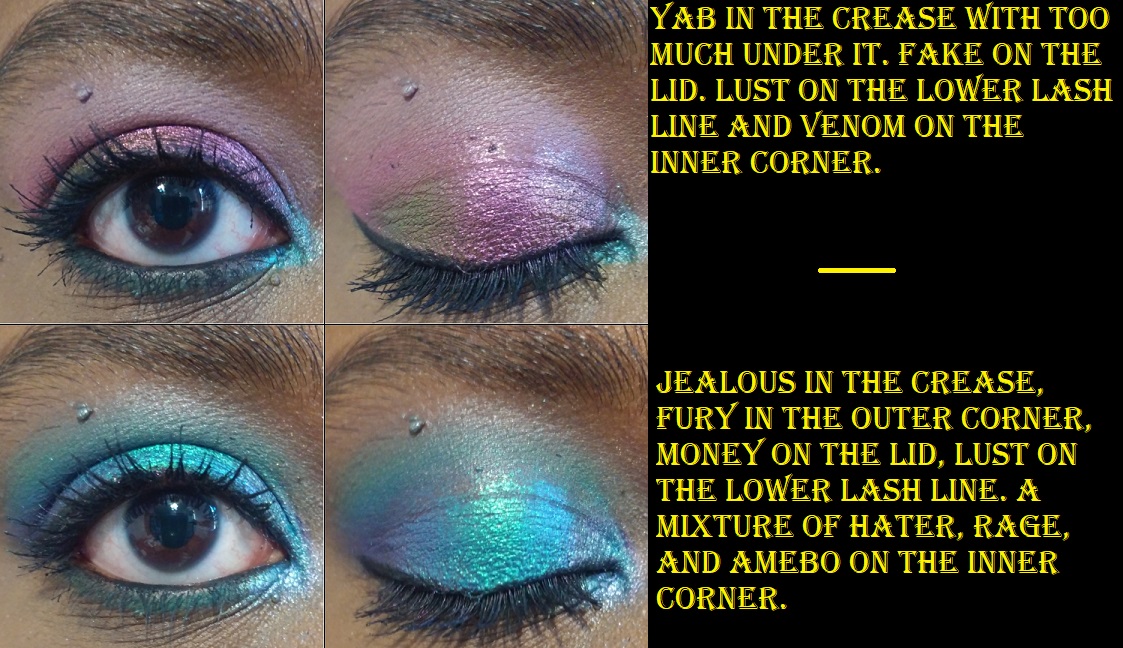 Yab, Too Much, Lit, and Wasted had the same pigmentation deficiencies I noticed from the other 6 pan palettes. Oya looks dark plum in the pan, but on the lids it’s almost black! I wish it was actually the dark plum shade I expected. Other than those, I really enjoyed the other shadows! I was so happy to have two multichromes (Fake and Money) and surprised to also see three duochromes (Amebo, Dope, and Bold). Even the regular shimmers are more in line with the Juvia’s Place quality I had gotten used to and they didn’t need a spray or glitter glue to make an impression.