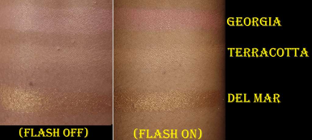 The last point I wanted to make is that I’ve tried to use Terracotta many times on my cheeks (and it actually makes a decent under eye setting powder). There was one time that I had it on and a slight tinge of color actually showed on my cheek by the end of the night. I don’t remember what foundation I was using at the time, but it led me to believe that if this shade is applied on foundation that oxidizes or will allow my natural oils to come through, it could potentially show on my skin. I have since tried to recreate that same scenario and have been unable to get the color to show visibly enough on camera (hence the hours later photo in the gallery above). So, I still stand with the fact that this won’t work on someone with my same skin tone. In the best case scenario situation it’s barely a whisper of color.