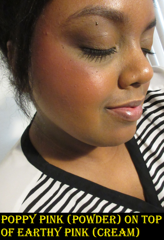 One thing that I found to be odd was that during the first week of the launch there were skin tones recommendations for each product on Sephora and Mario’s websites. Now they only have it for the highlighter, powder bronzer, and shaping sticks. The note that Creamy Peach could still work on medium-dark skintones and up to dark skin tones for Earthy Pink is the reason I felt comfortable taking a chance on those shades. Maybe they thought the advisory notes were too limiting and removed them, like Poppy Pink being listed for medium dark to deep dark skin tones even though it’s a pretty universal shade. Or perhaps there were some complaints for the blushes and that’s why they were removed, such as me being medium-dark and having Creamy Peach technically work for me, but only if I really pack it on. It’s still difficult to see on camera (clicking the image to enlarge it helps) but it’s visible in person.