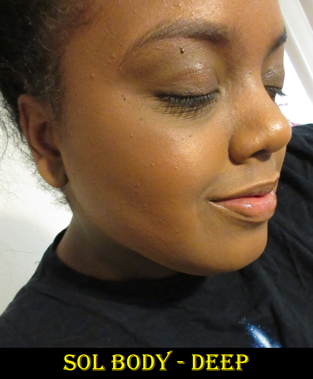 The bronzers are only applied to one half of my face (your left, my right) so the impact the bronzers make is easier to see. The Sol Body one actually blended too much to be picked up by the camera, so I added another less blended layer so it would be visible.
