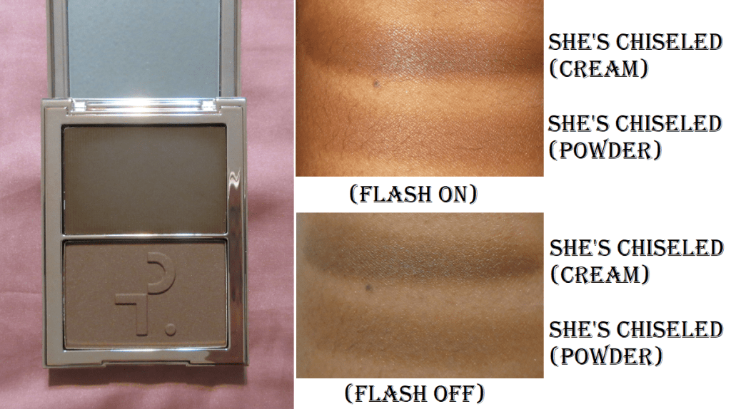 I am so conflicted over this duo. What I do like about it is the end result from combining the bronzer and contour together. The contour alone is a nice consistency and blends very well, but it sheers out a lot no matter if I use a damp sponge or brush. It’s the darkest duo Patrick Ta offers, and in swatches it looks nearly as dark as Kaja’s Mochamallow, but the Kaja cream has more pigment. The best that I’m able to build up the Patrick Ta contour, while keeping it looking blended, still isn’t rich enough in color to live up to the name of making me look ‘chiseled’. It also makes my skin look dull until I add the bronzer on top, which gives my face some life again. Unfortunately, adding the bronzer back loses a lot of the shadow effect, especially as the day goes on because I don’t find the contour to be very long lasting, but I still prefer the combination. The powder bronzer on its own is quite sheer and barely shows on me. I get that softer makeup looks are more on trend now, but I don’t think anyone darker than me will enjoy this duo. Also, the texture is also not very smooth at all. I bought it during the VIB sale and I could swear the powder felt smoother at the time, but now it’s a bit rough. Even the powder from my much older Patrick Ta Cream and Powder Blush duo feels softer and smoother.