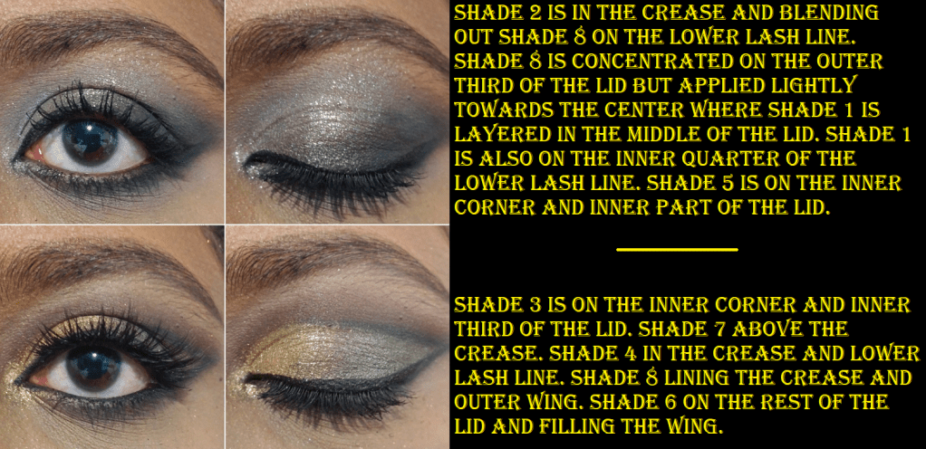 Although I felt it necessary to use the black shadow under some of the sparkly shades, and I favor opaque shadows over toppers, I’ve been very happy with the overall quality of this palette. I feel confident in buying more in the future if the colors included are shades I would use often enough. The mattes were easy to work with for the purposes I wanted and I liked the tones of them. They were certainly much better than the ones in the Juvia’s Place Quad.