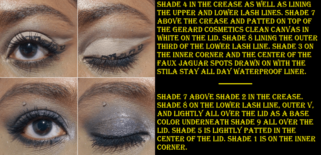I’m sad to say this palette did not live up to the expectations I had for it. It is not like their older formula that I loved. If a shadow swatches poorly, it doesn’t automatically mean it won’t perform well on this eyes, but Shade 1 looked patchy on my arm and took ages to blend and keep from looking patchy on my eyes. The time it took me to blend Shade 1 in my crease to my satisfaction was the same amount of time it took for me to do the entirety of Look #1 in the Huda Jaguar section. Shade 4 still takes a while to blend, but it’s not as hard to do as Shade 1. When I compared the mattes in this palette to the ones in The Tribe palette, Tribe’s mattes aren’t as thin. They are so much more pigmented and take significantly less time to blend.
