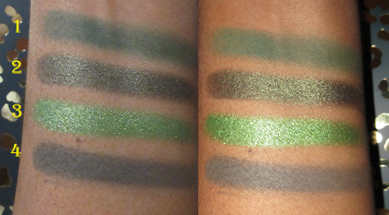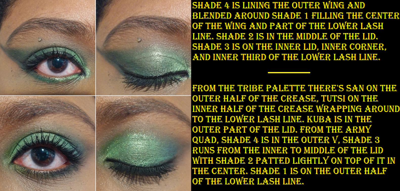 Formula issues aside, I do really like the colors and the level of shine. Shade 3 is much brighter than I’d expect out of an Army quad though, so I felt like it didn’t fit the looks I was trying to go for (grungy and muted). I had to tone it down with Shade 2 on top of it.