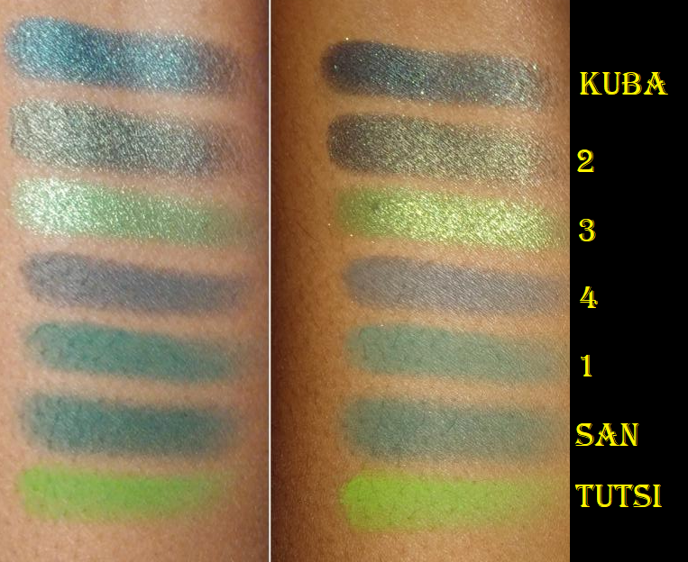 The eyeshadows are not named, so I numbered them based on their positions in the palette from left to right from the top to the bottom. My swatches are in the reverse order though.