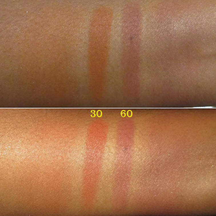 When used on the eyes, I have the same creasing issue. Technically this is worse because of how many layers I have to apply to get it to show up. No matter what I do, the creasing happens within five to ten minutes. Then within an hour it moves, breaks down, and fades in places. With Shade 30, it will last longer in the crease of the eye but not the lid. With Shade 60, it doesn’t last anywhere.