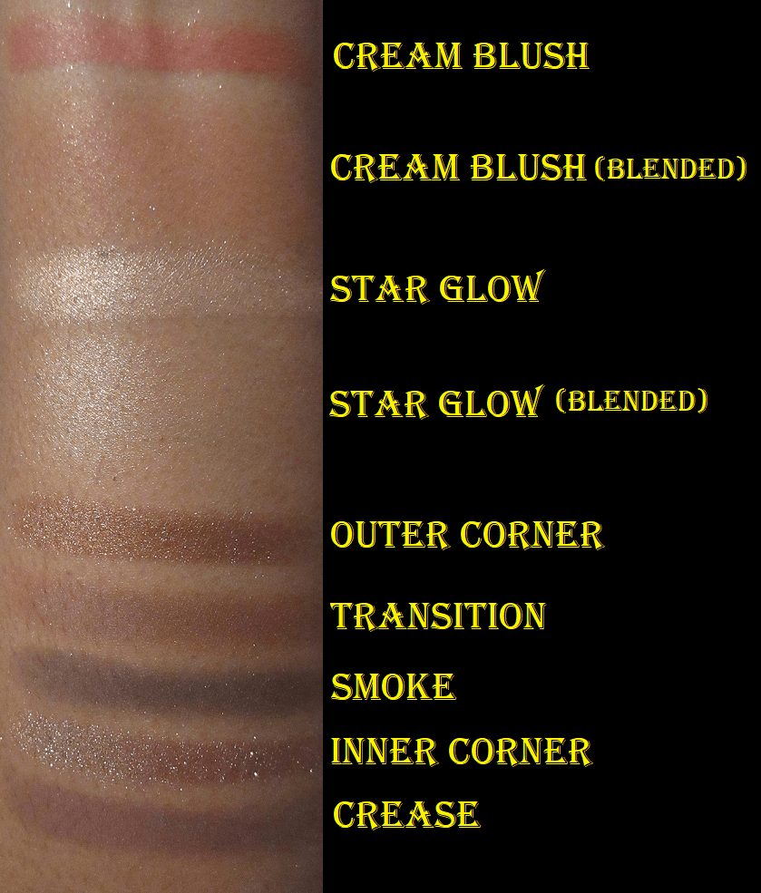 There’s no kickup when using the highlighter, which is nice. I can get Star Glow to look quite subtle using the Wayne Goss #15 Fan Brush and Smashbox Precise Highlighting Brush. With those brushes, I can dip into the pan multiple times to control how much I put on. However, when I use the Koyudo La Fuga del Gato highlighting brush, I gently tap my brush into the highlighter one time, yet that amount always lays an intense amount on my cheeks. Brushes make a big difference in look and performance with this highlighter! Star Glow is high shine. Even though the particles are very fine, it’s so reflective that it still gives me a sparkle effect. Sometimes I like it and sometimes it’s too much for me.