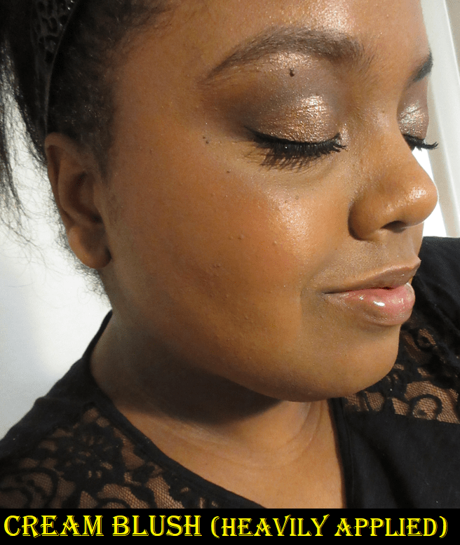 The amount of blush in the photo above is the most I can get if I’m not using a very dense brush. I would have to really go out of my way to successfully overapply the blush. The amount of highlighter in the rightmost photo was created with two passes from an brush that doesn’t pick up much product and one pass with a brush that picks up a lot. I would not want to build it up any further or it would start to look ill-suited for me.
