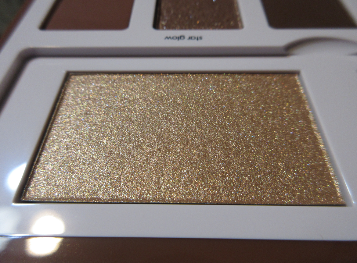 There’s no kickup when using the highlighter, which is nice. I can get Star Glow to look quite subtle using the Wayne Goss #15 Fan Brush and Smashbox Precise Highlighting Brush. With those brushes, I can dip into the pan multiple times to control how much I put on. However, when I use the Koyudo La Fuga del Gato highlighting brush, I gently tap my brush into the highlighter one time, yet that amount always lays an intense amount on my cheeks. Brushes make a big difference in look and performance with this highlighter! Star Glow is high shine. Even though the particles are very fine, it’s so reflective that it still gives me a sparkle effect. Sometimes I like it and sometimes it’s too much for me.