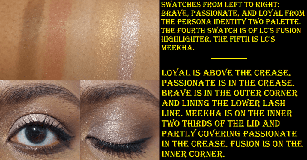 The combination of the colors in the Meekha pan turn into an icy lavender shade on me. I’m not sure how often I will use this shadow, but I was able to create a look that I liked. It even makes for a nice bright inner corner highlight shade for other eyeshadow looks! The eyeshadow texture and performance feels just like other shimmers from the brand. The formula is a bit thick, but they smooth out nicely on the lids and fallout is about what one would expect from a shimmer shadow (present but not too bad especially if applied wet or on top of a glitter primer).