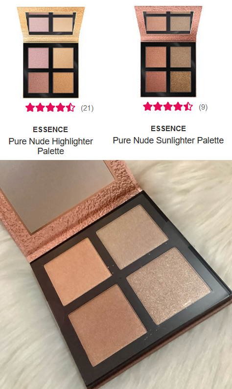 I heard so many people say the Essence Pure Nude single compact highlighter was the perfect dupe to Hourglass Ambient Lighting Powders, but I saw those in person and knew they would be too light for me. When I saw the palettes on Ulta’s site, I thought those would be deeper, but we know how that turned out. It’s possible that because the singles are baked, the formula and performance is totally different from these highlighters in the palette, since these aren’t the most refined and have a creamy slip to them that all baked products I’ve used don’t have. So, I guess I still can’t determine how good those singles are, but I can at least confirm that the highlighters in the palette don’t compare to Hourglass at all. They aren’t even the best options from the drugstore. They are too light for me, so they go on my skin bright and intense,yet they dull down so quickly and fade within hours. Even with a dewy product underneath, these highlighters don’t last on my face. They’re also a bit tough to blend and Pan #1 is flat out powdery and almost chalky. The other three weren’t as bad, but they reminded me of a slightly worse version of the Haus Labs highlighters in the Blush and Highlight Duos I’ve reviewed before. I can get the shades in this palette to work and look super pretty on the cheeks initially, but this formula just doesn’t last, which is the main reason I don’t recommend them.