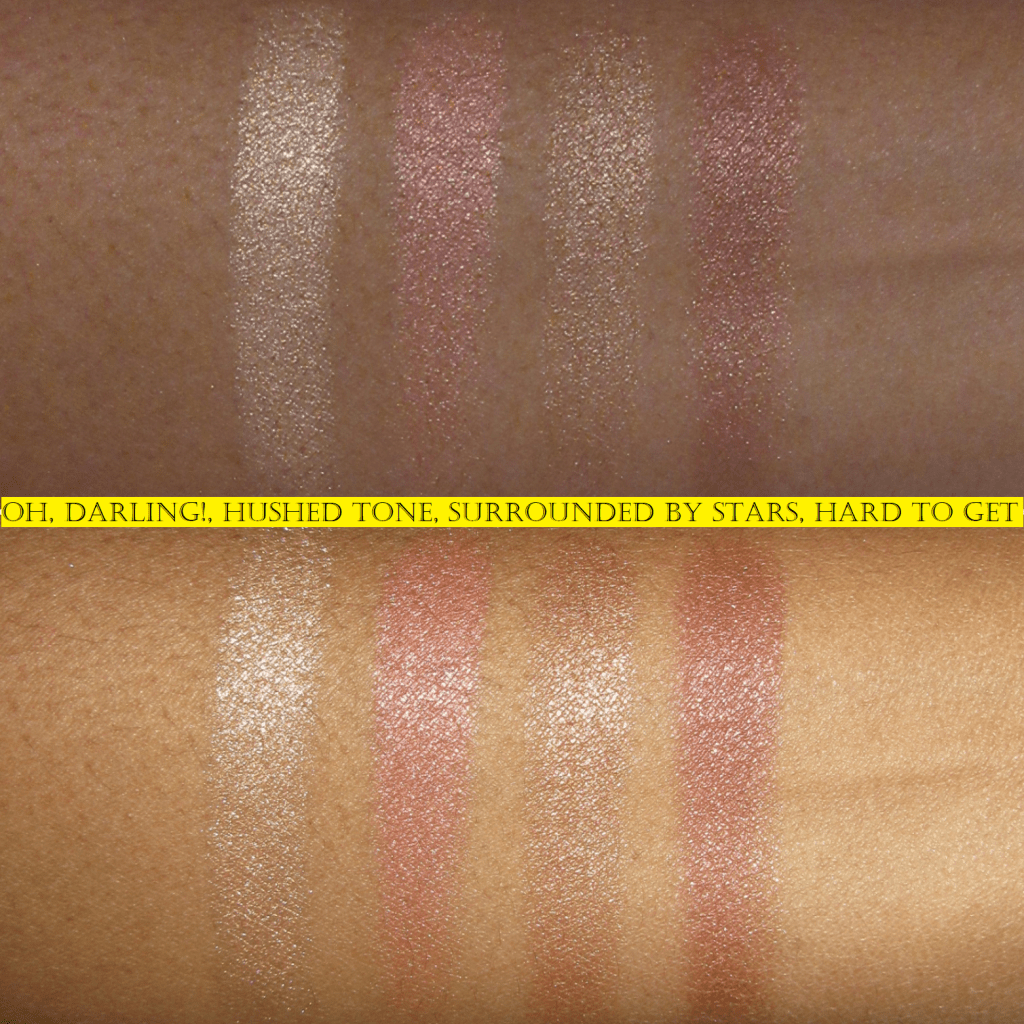 I already own Hushed Tone, but the other products are new to me. Hushed Tone was my favorite Extra Dimension Blush shade from MAC for a while, but it’s on the lighter side of medium which means it is harder to see on my skin. If I build it up too much, the shimmer particles become too apparent for my taste, which is why I usually reserve this blush for the winter time when I am at my lightest. Faux Sure replaced Hushed Tone as my favorite because it has just as pretty of a sheen but is on the medium-dark spectrum, so it shows better on me. Oh, Darling is a bit light for me and Surrounded by Stars only works for me as a highlighter, so I prefer to combine those two products. Surrounded by Stars can look a bit subtle because of the tone of it, so adding the tiniest amount of Oh Darling gives it that extra pop at the highest points of my face. As for Hard to Get, the only reason I don’t already have a single of that shade is because I knew it was darker than I like to wear for blush. It doesn’t look too dark in my photo since I applied such a sheer layer, but I can literally use it as a shimmery sculpting blush if I want. In fact, when I reach for this palette, I like to put Hard to Get just above where I would contour and have it be a deeper gradient going into Hushed Tone.