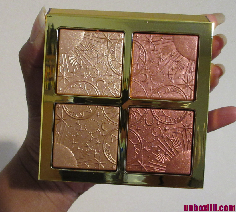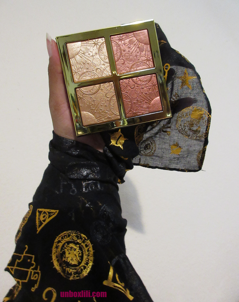 This item is part of MAC’s Magnificent Moon Collection that I purchased online from Selfridges containing an existing Extra Dimension Highlighter (Oh, Darling), two existing Extra Dimension Blushes (Hushed Tone and Hard to Get), and one new Extra Dimension Skinfinish Blush/Highlighter in the shade Surrounded By Stars, which is also the name of this face quad. This release was in celebration of Ramadan and EID, which I admittedly don’t know anything about aside from them being an important time in the Islamic religion. By this point, it seems this collection will not be released in the US. As a lover of celestial imagery and MAC’s Extra Dimension Skinfinish formulas, I couldn’t pass this up like I did with the MAC Mosaic Masterpiece Collection from 2020 that I hoped would come to the US, but it never did.