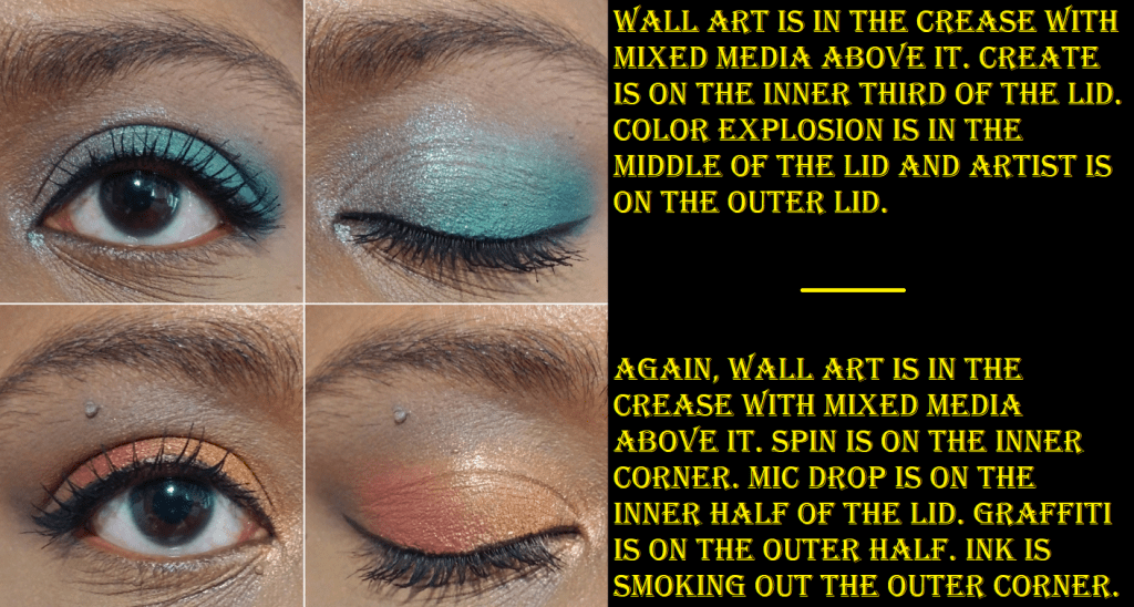 Another thing that shocked me is the quality of these eyeshadows! I know Tarte has a very dedicated fan base (how else would they be able to sell the same palette slightly tweaked over and over again), but I thought they just loved the neutral aspect. I didn’t realize the shadows were genuinely good! The shimmers don’t have that high intense sparkle to them that I’ve come to enjoy, but they are still shimmery enough, pigmented, smooth, and easy to apply. The mattes are soft and two are blendable. I wish I had more of them in this palette because there are only three: Mixed Media which I can only use to brighten the look or blend out edges, Wall Art which barely shows on my skin and also only works to soften the edges of shades, and Ink which is a stubborn to blend black shadow that requires using the tiniest amount, blending, then slowly continue to build and blend. Working with Ink is too tedious for me. So, I sorely miss having some mattes to use in my crease that will actually show.