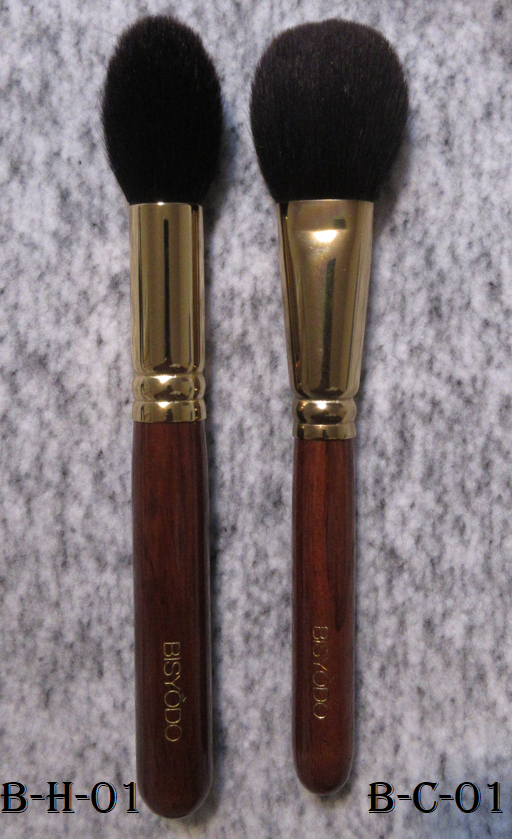 Since the Bisyodo CH-HC is one of my holy grail highlighter brushes, I wanted to purchase the similar looking B-H-01 as my premium version. The head size and handle weight differences give it a much different feel than I expected and the end result is not alike at all. Since the B-H-01 ends at a wider taper than the CH-HC, the former gives a more diffused look whereas the latter is better for precision and a little more concentration of product.