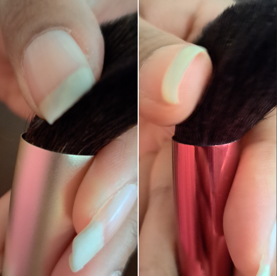 I accidentally dropped this brush, and I believe that’s what caused the ferrule to bend and create a flat edge at two points, which made the hair shape go from being circular to a quarter section being flat. I have a tool from my crafting days that I used to get it back in shape. I would not have attempted to fix a more expensive brush, and a few times I did make it a little worse before making it better, so I only recommend those with experience to attempt the same as I did to fix things. I have dropped other brushes in the past, but this is the only one I’ve noticed that actually got damaged from that happening. Perhaps the others did too and I just didn’t notice it, but I figured it was something I should mention. Those who aren’t as clumsy as I am sometimes will likely not have to worry about it. I certainly still love this brush and recommend it.