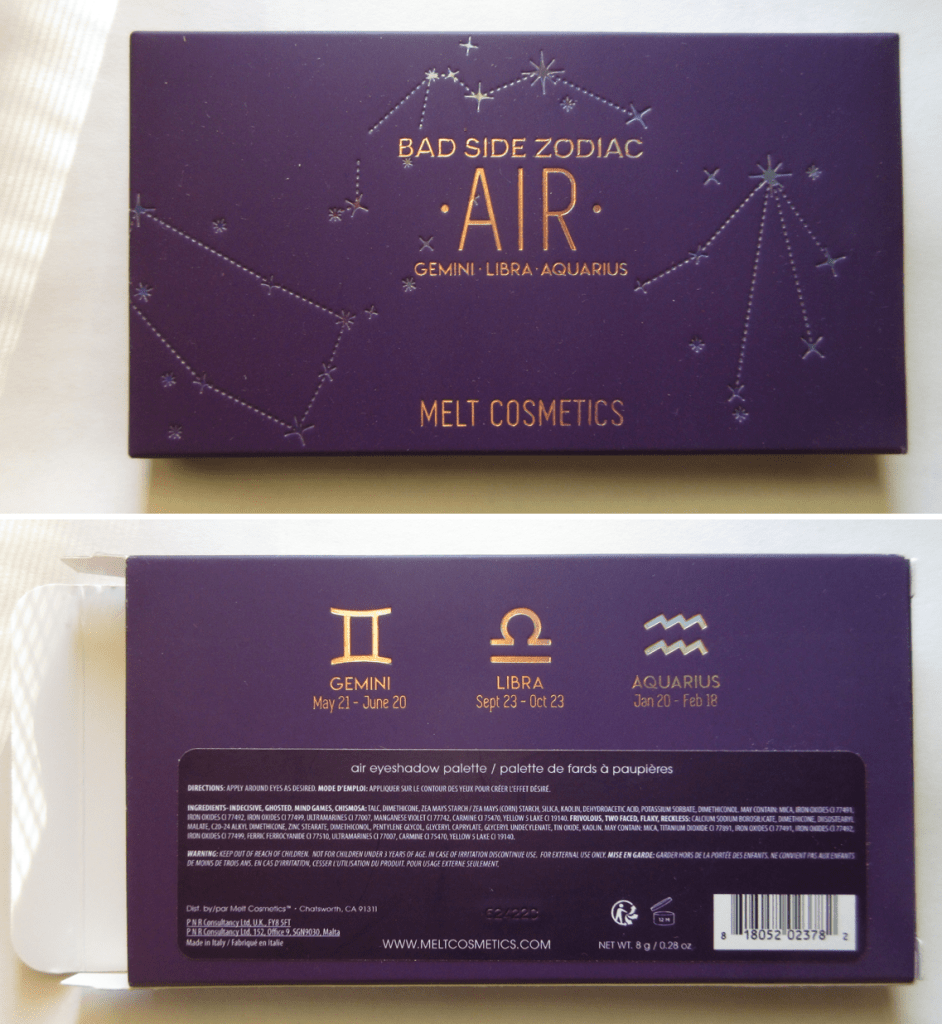 We’ve seen plenty of zodiac and birth month themed makeup over the years, but it’s something that never gets old for me. If anything, the only aspect that drives me nuts is that the majority of the time I dislike the ones intended for me. I’m a Scorpio and felt a compulsion to buy the Water Sign palette along with Air, but I’m in an anti-blue eyeshadow phase, so I reminded myself not to fall for that selling tactic and only get the colorway that I actually want. Besides, I’m already aware of my toxic traits and don’t need a palette to remind me of them, haha.