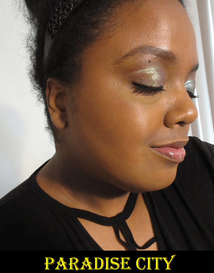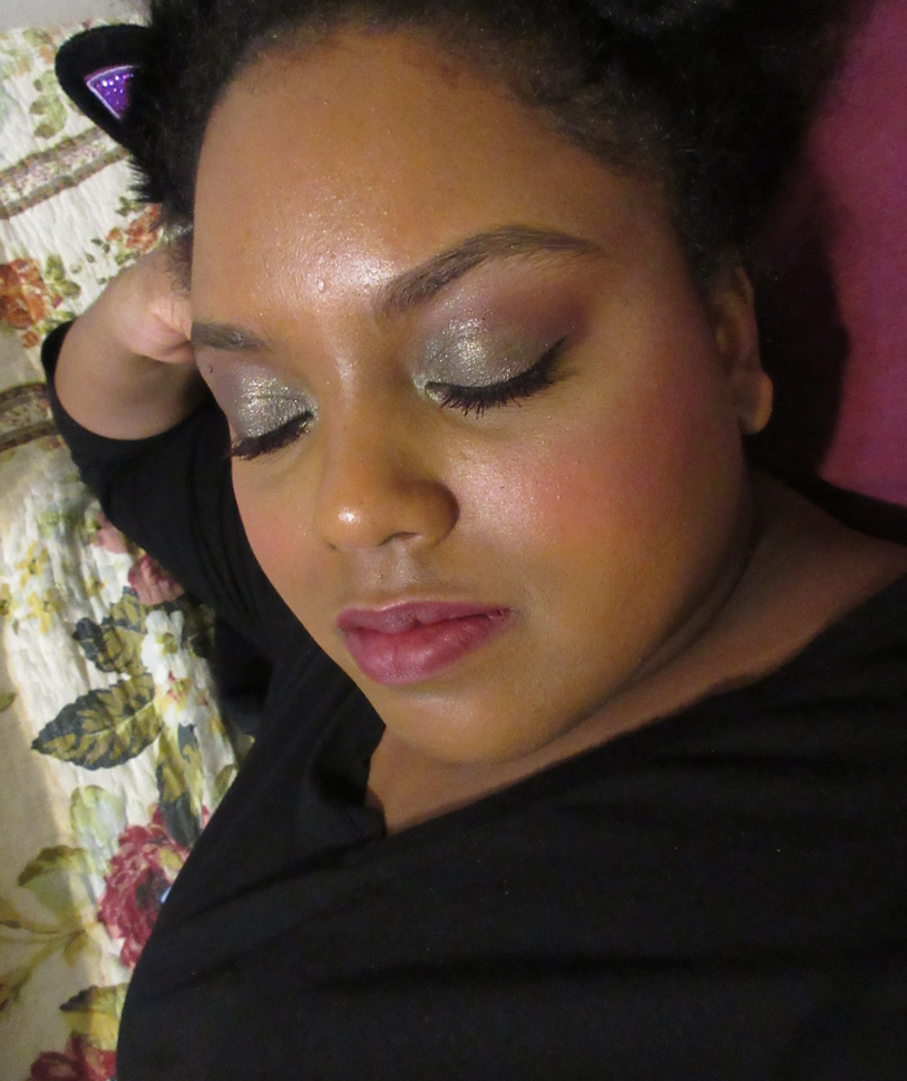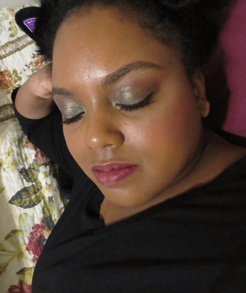 Find the Book is intended for face and body use, but I have not tried to wear this anywhere else. I can’t stand wearing body makeup, so that will not be demonstrated today. As I mentioned earlier, it moves and stays too creamy on the eyes. On my cheekbones though, it does dry down but it’s not transfer-proof. I still get sparkles that come up on my finger when I touch my face.