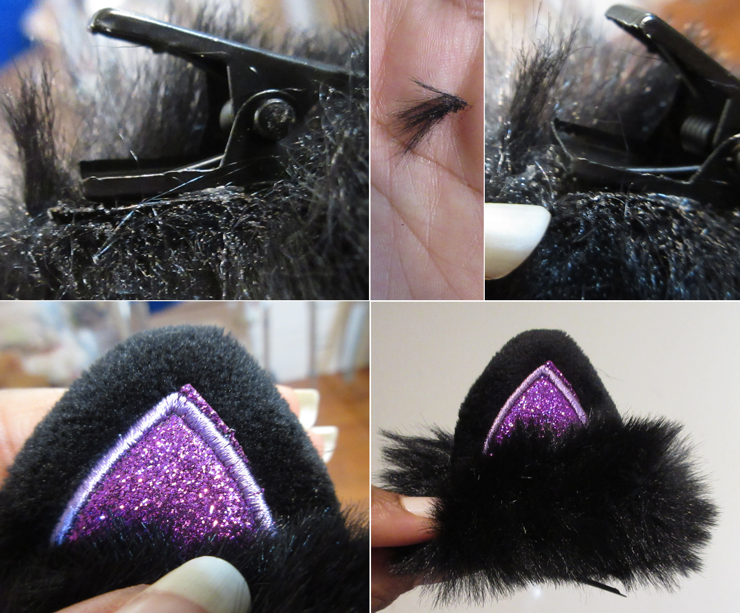 I think they look great! The fur is soft and the cloth ears are soft as well. I feel obligated to point out some of the flaws though, as these aren’t the highest quality. For example, part of the fur lining came unglued from the handle, a tuft of hair came out already, the inner portion of the cat ear peeks out beyond the stitching, and because the handle end of the clip isn’t exposed and the fur strap goes past it, I have to be careful how I place my fingers to open the jaw of the clip so that I don’t potentially tear anything off. In addition, the clip is made of a very thin metal and whatever paint coating they used gives it a plastic feel.
