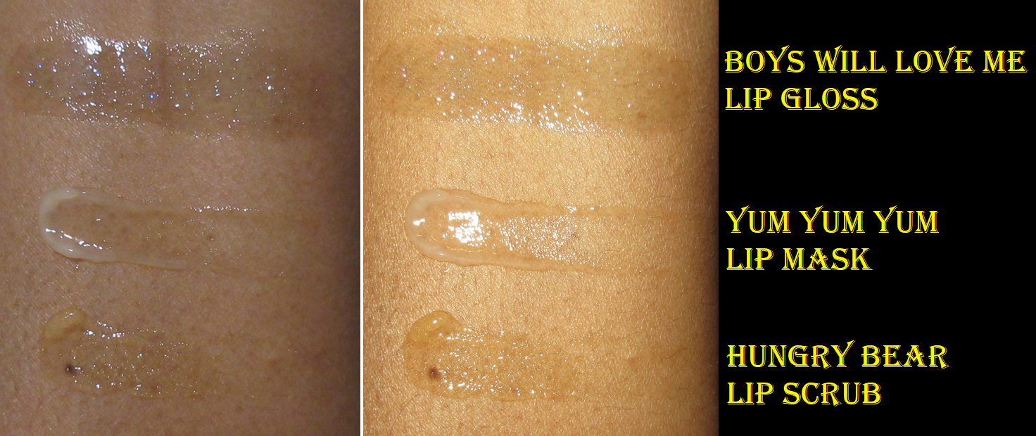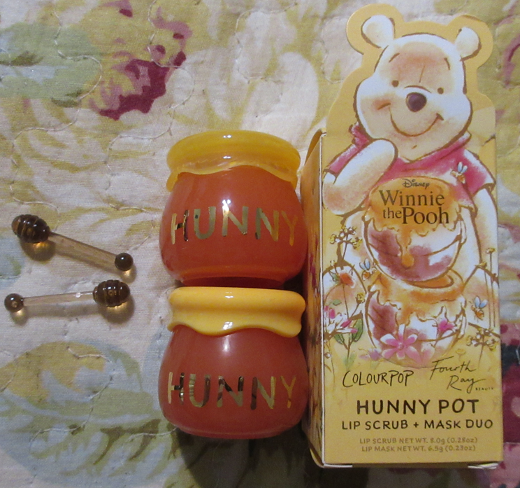 The hunny pots with the plastic honey dipper applicators are the cutest things! I’m so happy I was able to snag these when they restocked. The lip mask smells deliciously of honey and they added a slightly sweet flavor to it. It feels so soft on the lips. I forgot how nice these lip masks from Fourth Ray/Colourpop are! The lip scrub has finely sized sugar particles, the kind that don’t do very much exfoliating for my lips, but I like that the formula it’s suspended in comes off my lips easily enough without leaving my lips feeling oily or sticky.