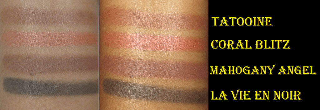 If I had to rank these from most liked to alright/fine, it would be: Bronze Bliss, Nude Allure, The Golden One, and Divine Droid. Bronze Bliss easily wins because it has the most of those metallic type shimmers which are what’s special about this new formula from the brand, in addition to the matte. Nude Allure comes second because of Coral Kiss and having an even more useful matte. The Golden One has the very special Coral Blitz, plus a matte, plus the gorgeous Cyborg Relations, but it is the least inspiring color story together in one palette which is what knocks it down from what could have been the second spot. Divine Droid is last because of there being no mattes, less reflective shimmer, and the stubborn purple.