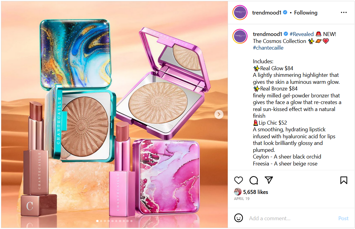 And, by the way, doesn’t the pattern look more like a geode/crystal than a galaxy (especially the pink one) or an acrylic pour painting? Calling this launch a “cosmos” collection that should be all about vastness and grandeur, while using the most restrictive and uninspired makeup options is quite bold of them.