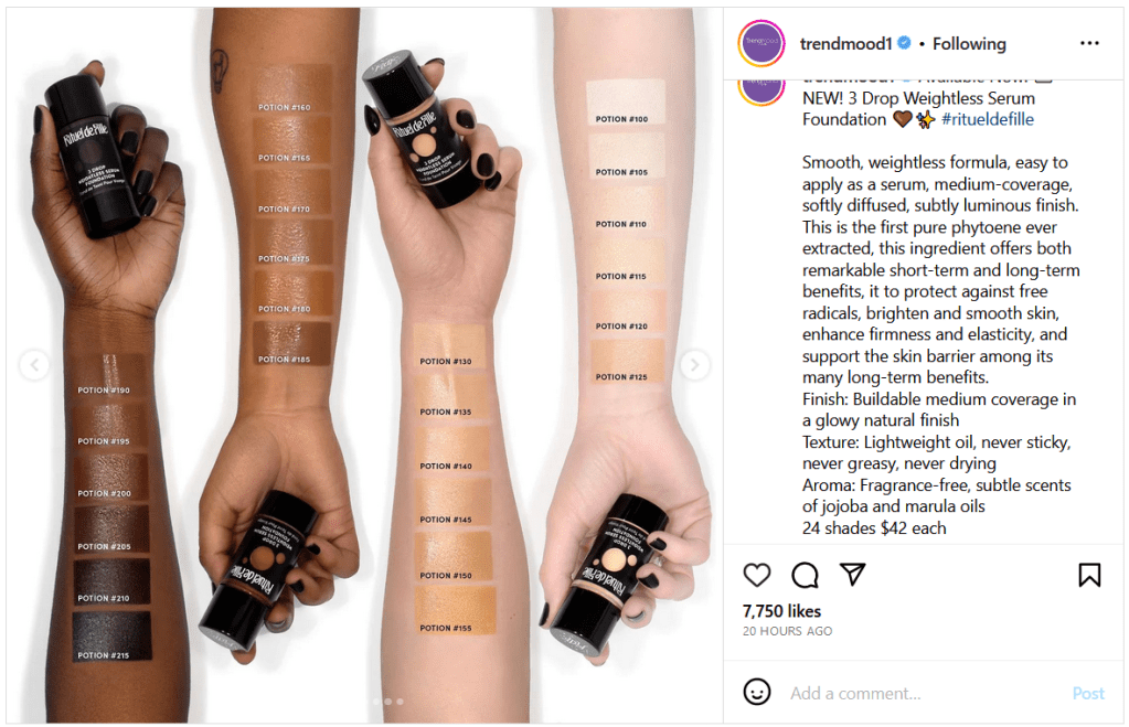 I’ve been curious about trying Beekman 1802 skincare, so the fact that this is now branching into makeup is extremely appealing! This product is supposed to be a primer with SPF benefits, another appealing attribute, but I mostly was interested in using this as an actual skin tint for natural skin days. The color Rich looks best for me, however, the promo images for the shade Deep has me thinking this will not work out. The model using Deep looks lighter than me (but the photo also looks a bit washed out, so perhaps that’s the issue), plus the close up makes it look so grey tinged, milky, and light on her skin. It’s the same type of issue many foundations with SPF above 30 have in leaving a cast or unnatural tint on top of dark skin due to the specific active ingredients as the sunscreen.