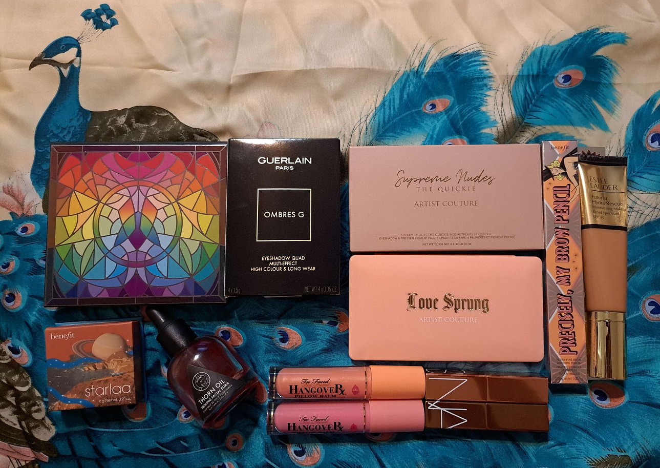 Ulta 21 Days of Beauty Haul – Benefit Cosmetics Precisely, My Brow Pencil Waterproof Eyebrow Definer in Shade 5, NARS Afterglow Lip Balms in Laguna and Torrid, Estee Lauder Futurist Hydra Rescue Moisturizing Foundation SPF 45 in 5W2, Too Faced Hangover Pillow Balm Ultra-Hydrating Lip Treatment in Watermelon and Mango (way more added in 2o23), and the Rituel de Fille Thorn Oil Priming Facial Elixir.