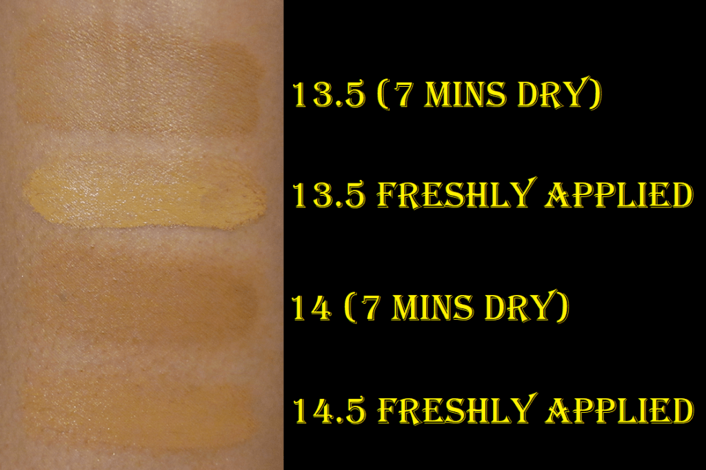 I was initially saving this review for a foundation ranking/declutter post I started working on at the beginning of the year, but never finished. I purchased Shade 13.5 which was slightly too light, but I could pull it off as long as I used bronzer with it. I bought Shade 14 at the end of November, and that was closer to my skintone, but slightly too dark. I can get a good match by mixing the two, but I have to be careful because the color darkens once it’s dry. So, I can’t just mix to my correct shade while wet. I have to mix to get my correct dry-down color.