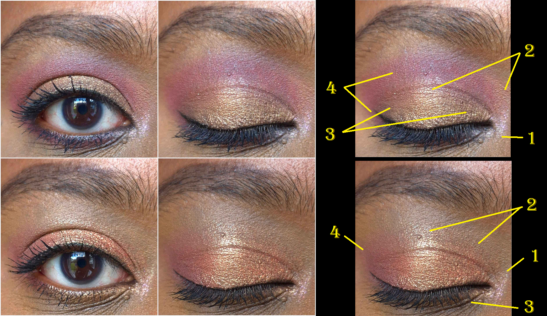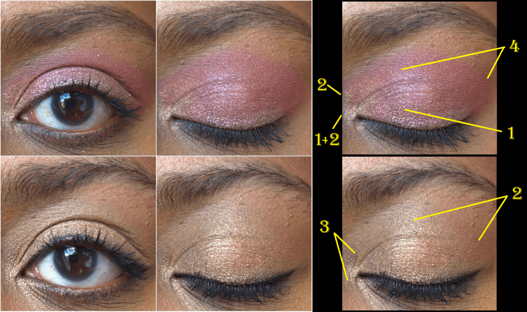 Pink Glow and Fiery Coral are both considered toppers, but only Pink Glow has a translucent base with iridescent pink shimmer. Fiery Coral has a subtle coral base color with gold shimmer. I can see this when I pack the eyeshadow onto my lid with my finger (4th eye look), but it’s especially visible when I apply it with a damp brush (2nd eye look). Pink Glow is absolutely not a unique color, but it’s useful to have as an inner corner highlighting shade and to pair with Soft Burgundy.