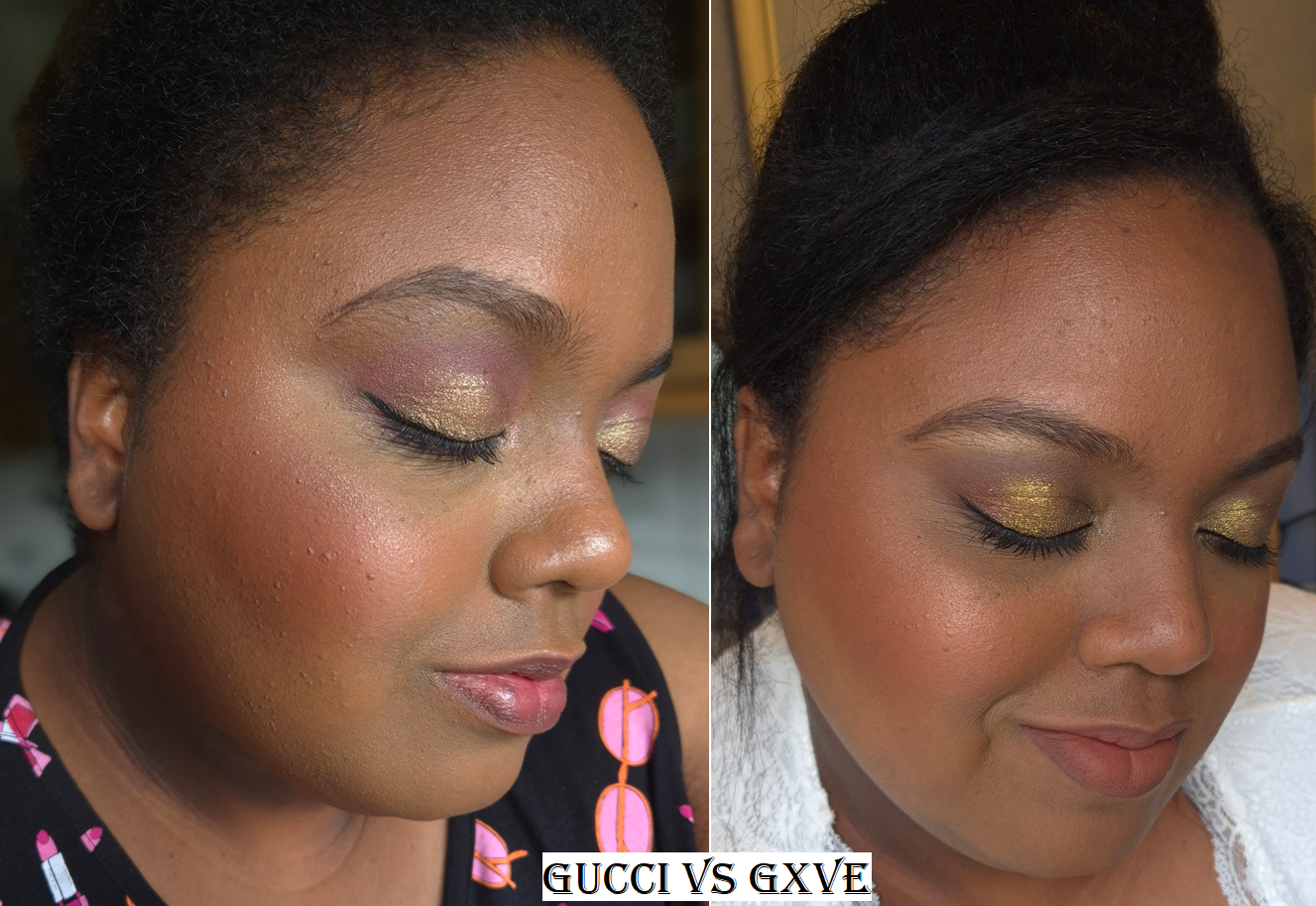 As a further example of what I mean, below is a comparison between Gucci on the left and Gxve Beauty on the right. The one on the right still has a visible glow and I can see shimmer still, but they’re much smaller. As pretty as Gucci’s looks in the picture, the texture is amplified when I view it from my own mirror. Gxve Beauty doesn’t have a unique formula, but it’s beautiful and it works. The retail price is $30 and I bought it during a half off sale. So, compared to Gucci’s $59 retail price, I regret giving into my impulses.