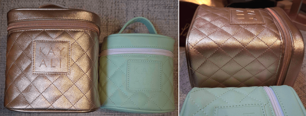 On a final note, I just wanted to share that for the Huda Cyber Craze event this year, I bought a notebook and the fragrance case that is supposed to hold three 100 ml bottles. It’s listed as rose gold, but to me it’s more like a rosy bronze. It makes for a very secure makeup bag with the two dividers inside. Naturally, it’s way bigger than the Yum Pistachio Gelato Fragrance case that I’m using a bit more as intended by holding all my trial and travel size perfumes. I just wanted to share pictures and comparisons in case anyone has been interested in getting those from the website. I tend to like Huda’s non-makeup merch too.