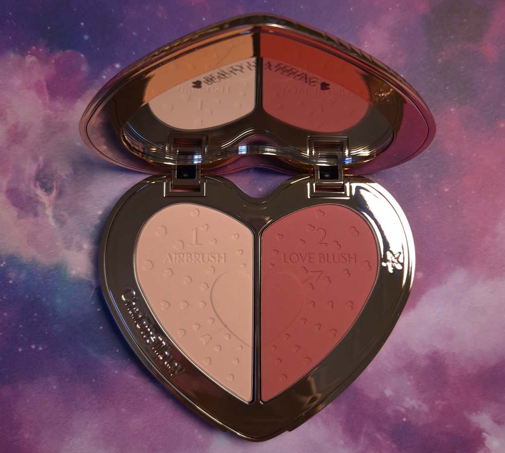 I could not get into the Sailor Moon anime, but I love the art and style of everything in that world! This product looks like it could be Sailor Moon merchandise, but without feeling like children’s play makeup. This compact has some weight to it, even more than the compact of the brand’s powder bronzer. Since I like Charlotte Tilbury setting powders and blushes, this was not a launch I could skip.