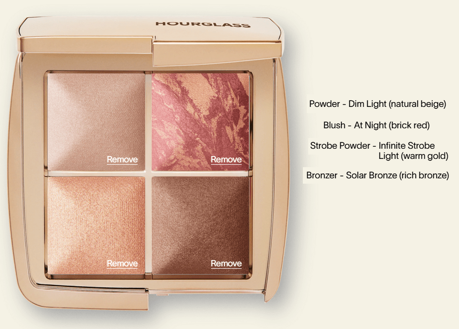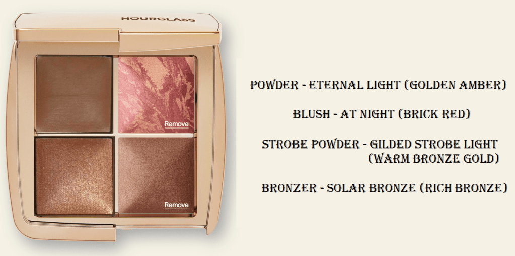 This custom option would give me 3 products I don’t already own and 1 product that I wanted a duplicate of anyway. It would cost a lot more money if I had to buy other palettes in order to acquire them. If I like all 4 colors, I could keep them in this quad. If I don’t, I can depot them and put them in other palettes using magnetic sheets and metal stickers, but the packaging would be warped on the bottom if this is made of plastic. Based on videos I’ve seen, I do believe it’s plastic which tends to be much harder to depot than when Hourglass has these powders in their metal packaging.