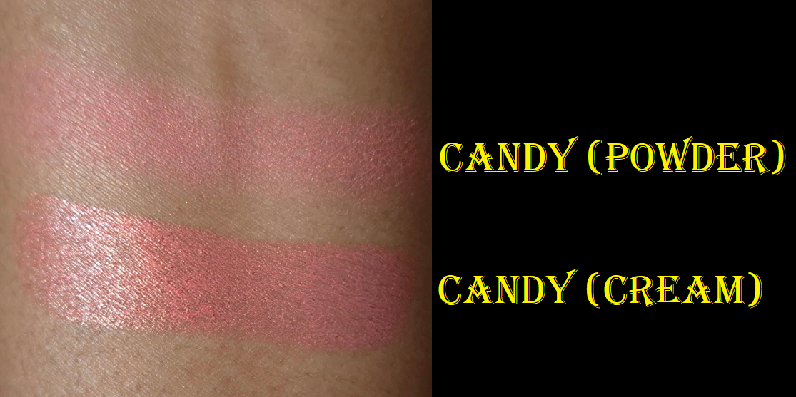 The saving grace for me is that I can add the Candy blush stick on top to help the shimmer become one with the skin, plus boost the appearance of the pink color.
