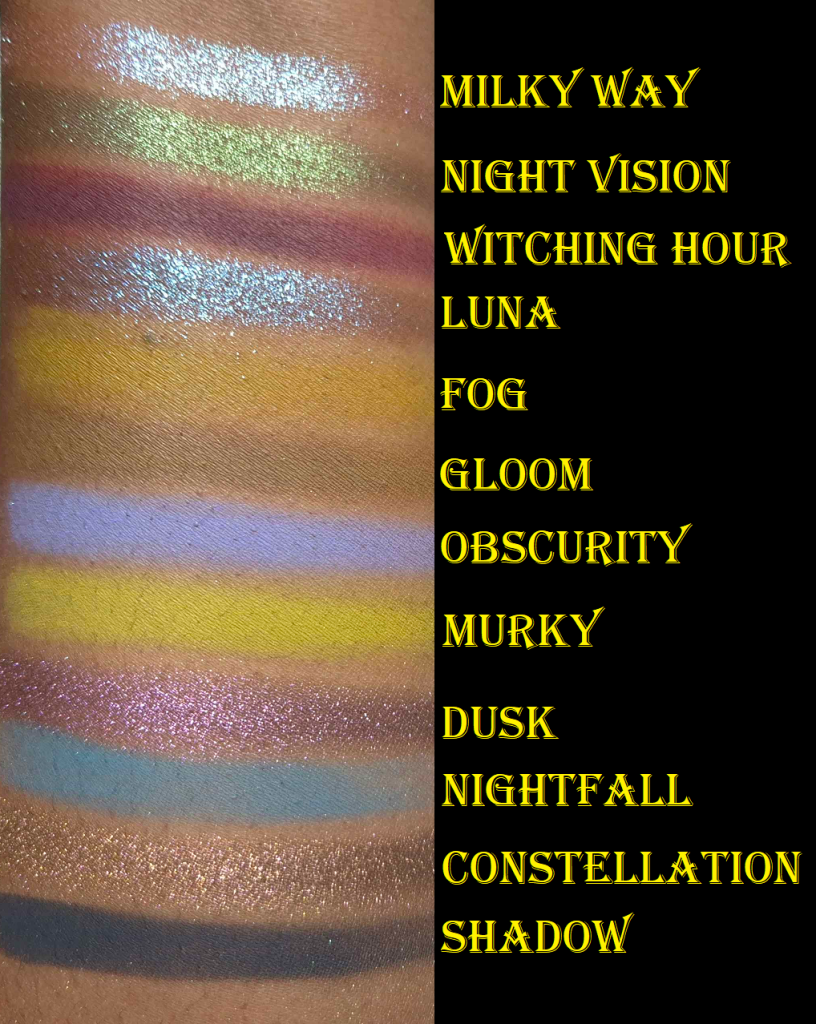 Of the three palettes I reviewed today, I like these mattes the most. As for the shimmers, it’s tied with Glaminatrix Cosmetics because it depends on my mood. The ones in Tales of Terror are the most intense, but I don’t always want intensity.
